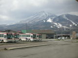 窓の外には磐梯山。